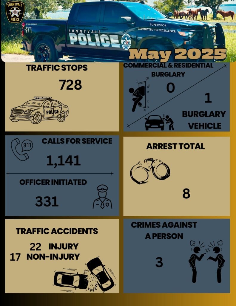 Sunnyvale PD’s department was founded in 2019, so it’s still very new, but it’s got 23 members and a budget of around $4.2 million, so it’s a substantial investment in our town’s safety and well-being. Sunnyvale PD’s Facebook page is a great resource to engage with our police department. They share upcoming events like “Coffee with a Cop,” severe weather notices, and Citizens Police Academy, along with some regular reporting on crime in the town. They also have a number of announcements celebrating the ways our police are helping the community. We’ll cover the department’s future plans and how it compares to other departments in later posts, but if you see a Sunnyvale cop on the beat, congratulate them on a good report!