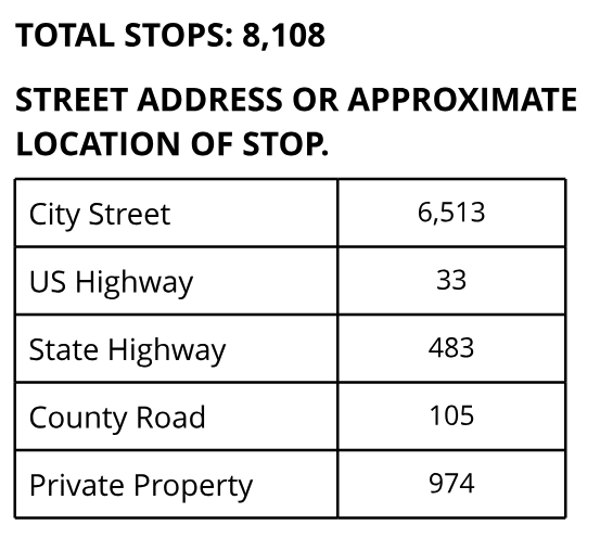 Most traffic stops are on city streets–how much of that is just Collins Rd, Tripp, and Town East?